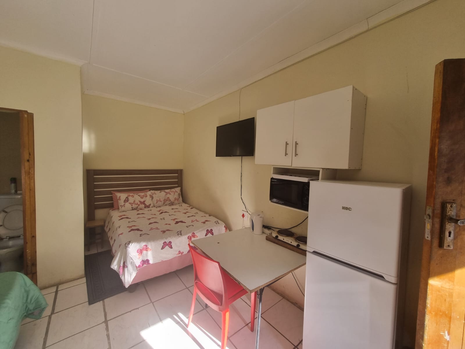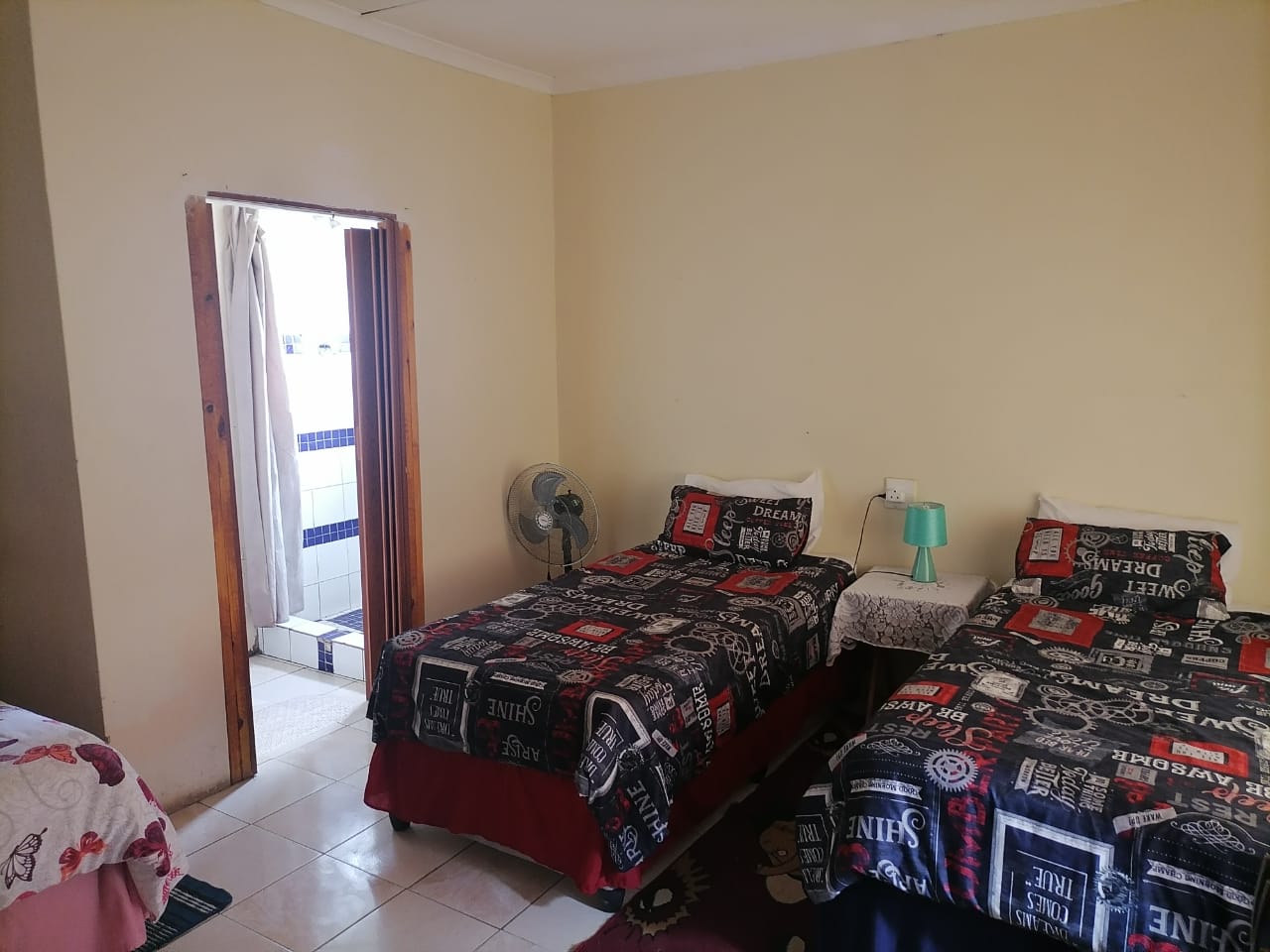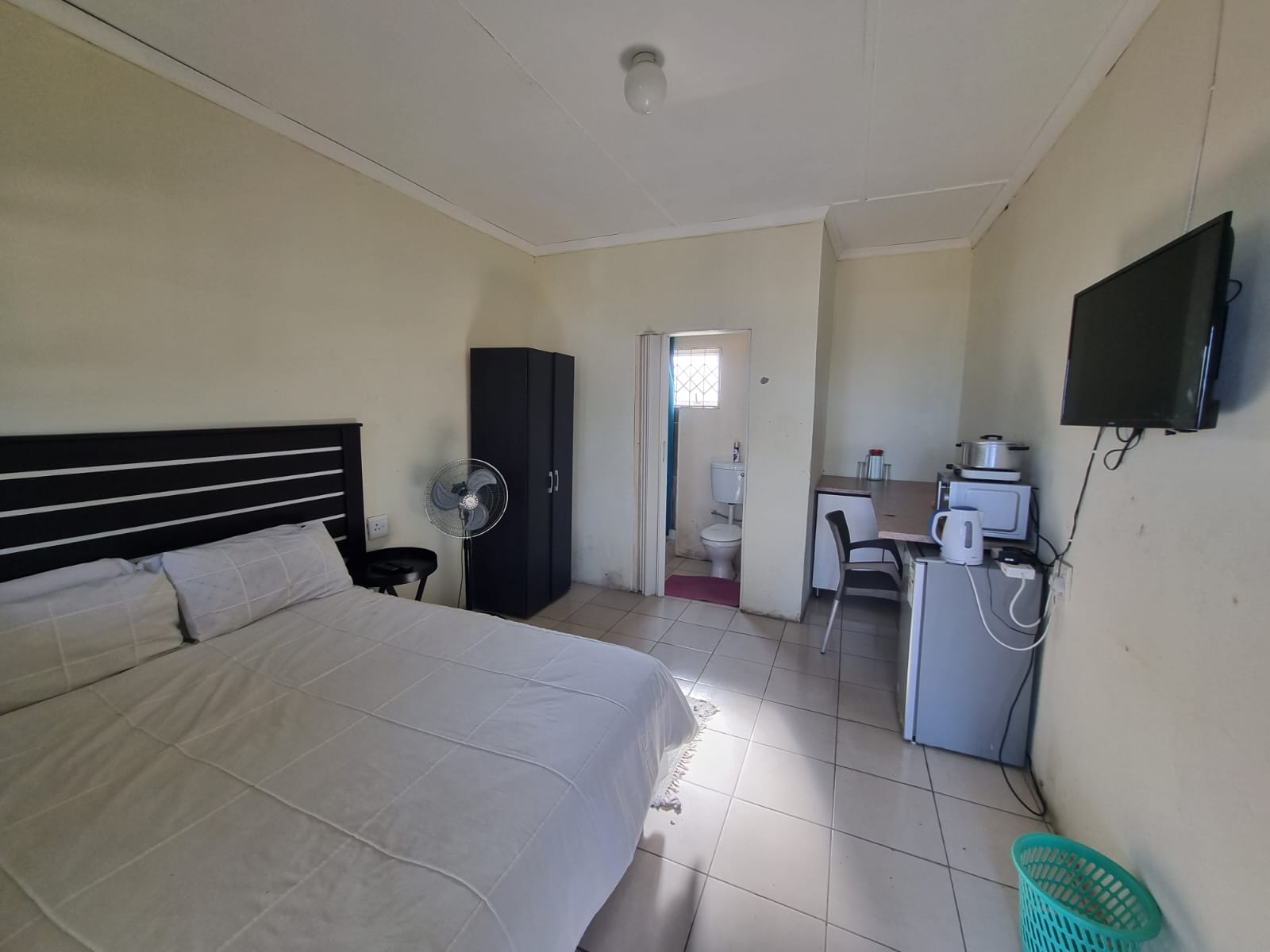 This room can accommodate a max of 5 people. Great option for families with kids or a group of friends. It has a double bed, bunker beds (single bed on top & double bed at the bottom), small kitchen unit that includes a bar fridge, microwave, cooking utilities, stove, cutlery & glassware.